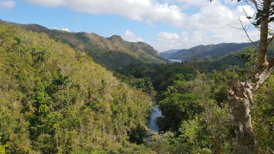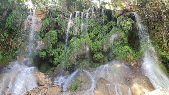 Heute steht bei und der zweite Ausflug in die “Topes de Collantes“ an, aber diesmal von der westlichen Seite und auch wieder zu einem Wasserfall. Um 09:00 Uhr geht die Fahrt mit dem Privattaxi los zum 50 km entfernten “El Nicho“, unser fahrbarer Untersatz ist diesmal zum Glück kein alter Oldtimer, sondern ein echt schnittiger MOSKWITSCH, der Top in Schuss ist und ab geht wie Schmitz Katze. Unser Fahrer entlässt uns auf den nur 2 km langen Rundweg “Reino da las Aquas“ und wir vereinbaren 2,5 Stunden Aufenthalt.
