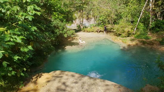 Der Weg und der Wasserfall sind sehr schön, aber es ist schon einiges los und so kommt man sich vor wie auf einem Selfie-World-Contest. Nachdem wir die Runde zu Ende gedreht haben, hält mich nichts mehr und ich mache einen Sprung in den türkisfarbenen Naturpool – herrlich!