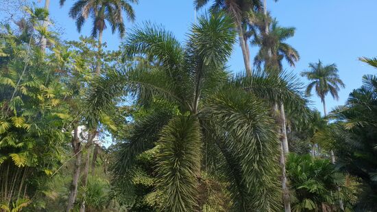 Die Besonderheit des Gartens ist, dass hier überwiegend tropische- und subtropische Großpflanzen wie über 300 Palmen-, 20 Bambus- und 400 Kakteenarten auf über 1 km² angepflanzt sind. Hier haben wir zwischen drin immer mal einen Führer gehabt, der uns das ein oder andere erklärt. Mir leider nicht, dass die wunderschöne herzförmige Nussschale, die ich gerade possierlich für Anja ins Bild halte, ganz biestige mit Wiederhacken versehenen Nadeln hat. Schön sehen meine mit winzigen Stacheln versehenen Finger jetzt aus und es fühlt sich auch ebenso schmerzhaft an - grrrr. Nachdem mich Uwe beschwichtigt, dass ich keine Not-OP wegen den Dingern brauche, machen wir uns auf den Rückweg nach Cienfuegos. Hier lassen wir den Tag auf der Dachterrasse des Top-Hotels “La Union“ mit Blick auf den Parque Central Jose Marti ausklingen.