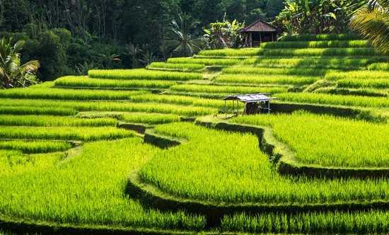 Bali ist berühmt für seine malerischen Reisterassen, die man bspw. von Ubud aus bequem zu Fuß erforschen kann.