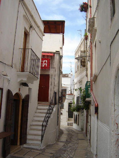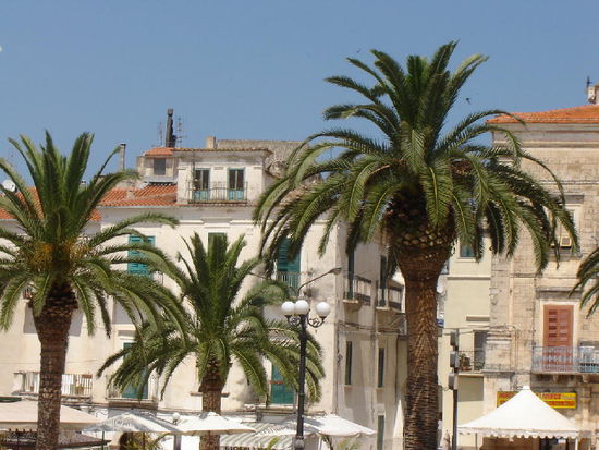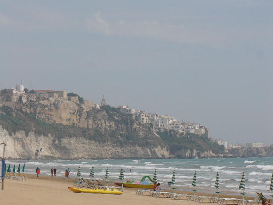 Vieste ist das Zentrum des Gargano mit einer intakten Altstadt. Unter dem mächtigen Kastell von Friedrich II. (leider nicht zugänglich, da im Besitz der Marine) bummelt man den weissgetünchten Häusern entlang. Unterhalb der Steilwand erhebt sich der freistehende weiss im Sonnenlicht glänzende Felsen Pizzomunno.