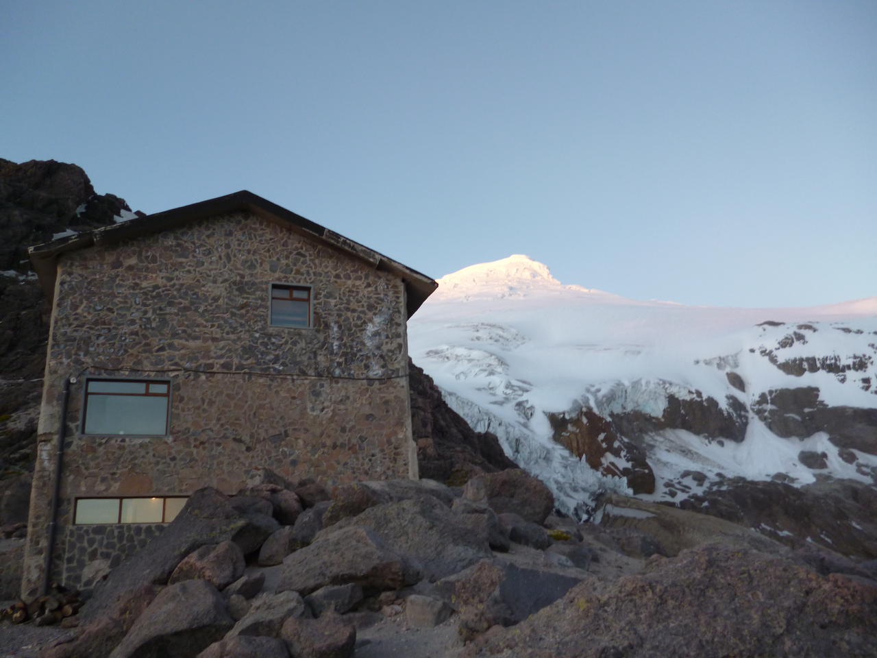Die Belohnung ist allerdings eine fast zu luxuriöse, neu renovierte Hütte. DAS hatte ich mir spartanischer vorgestellt - immerhin befinden wir uns hier tausende Meter oberhalb der typischen Alpenhütte, wo man sich die 50-Zentimeter-Matratze noch mit den Knien und dem frischen Atem des Nebenmannes teilen darf...
