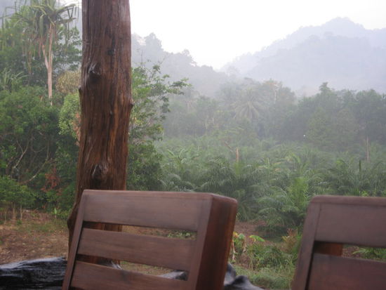 Sicht von unserem Treehouse aus auf den Dschungel (Uhrzeit 6.30 Uhr, deshalb noch so diesig, aber trotzdem schon warm)
