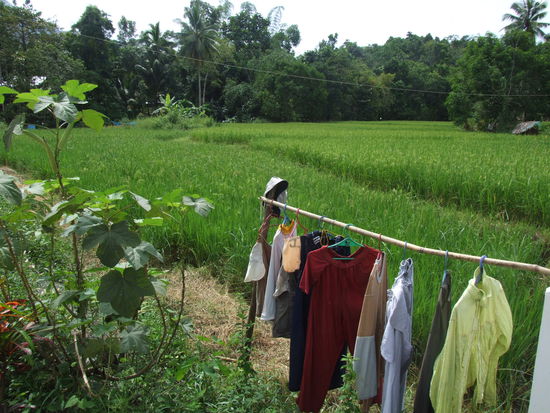 Wäsche stellt man einfach neben dem Reisfeld an der absolut pikobello sauberen Straße zum Trocknen hin. So einfach ist das Leben. Selbst die Deutschen sollten bei soviel frisch mit Perwoll gewaschener Wäsche am Straßenrand natürlich neben dem Reisfeld an einer extrem vorbildlich sauberen Straße, vor Neid erblassen. Ich erblasste nicht nur vor Neid, sondern man muss sich wundern, wie einfach und normal das Leben sein kann.