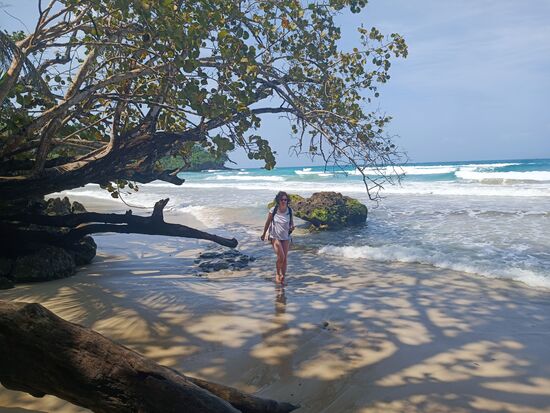 Beide Strände sind durch einen kleinen Weg verbunden, 30-40 min durch den Dschungel. Es war nicht so schlimm wie am Vortag, aber stellenweise nicht angenehm. Und als dann noch eine große Spinne den Weg versperrte...da kamen bei Simone Erinnerungen an gestern.