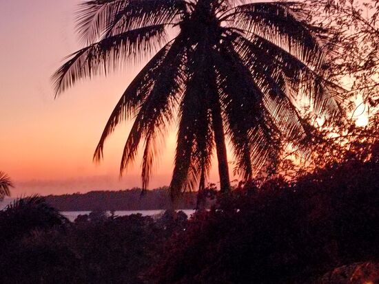 HInter dem Strandbereich im Brackwasser wohnt eine Krokodilfamilie, Schwer zu sehen im oberen Bildbereich, aber immerhin 2m lang.