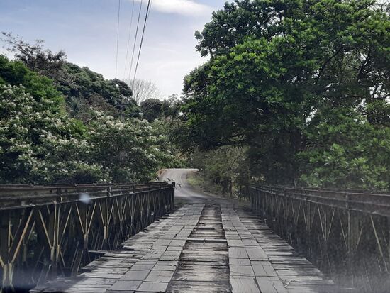 Zuerst ein durch den Regen sehr rutschiger Weg bergab.
