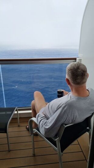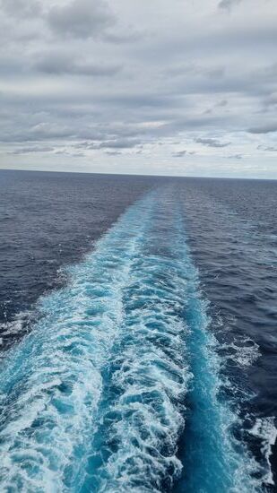 Heute ist Seetag. Der Himmel ist grau, es sind nur 19 Grad C, es windet und das Schiff schaukelt. Wir frühstücken nur kurz, dann legen wir uns wieder hin. Ich kann aber wieder nicht schlafen. Diese Ruckelei lässt das nicht zu.