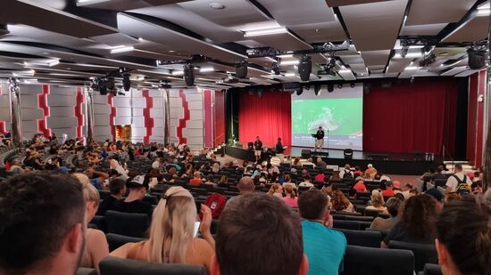 Der Kuchen liegt mir anschließend tonnenschwer im Magen, so dass wir zunächst auf das Abendessen im Restaurant verzichten. Erst gegen 20.00 Uhr holen wir uns auf Deck 16 (dem Fresstempel, wie wir ihn nennen...) noch eine Kleinigkeit, sitzen danach in der Sportsbar und schauen später eine Show im Theater. Wir gehen früh zu Bett.