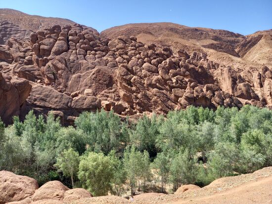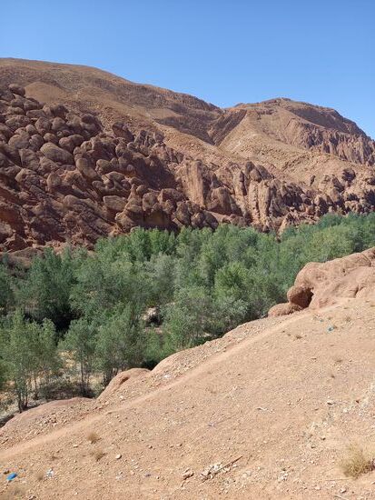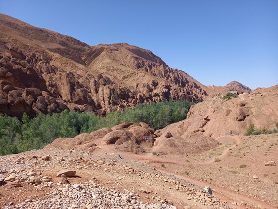 Nachdem wir das Dades Tal wieder verlassen haben, besuchen wir eine Rosen Destillerie. Im Tal der Rosen findet gerade die Ernte der Rosenblüten statt. In der Stadt El Kelaa wird zur Zeit das Rosenfest gefeiert und es wird eine Rosenkönigin gewählt. Die Fahrt durch das Tal war wenig spektakulär. Wir haben ein paar Rosenplantagen gesehen, aber die Blüten waren weitestgehend abgeerntet.