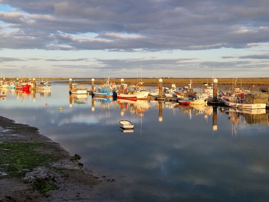 Am nächsten Tag wollen wir die Praia do Barril in der Nähe unseres Quartiers besuchen. An der Sandalgarve gibt es fast durchgängig vorgelagerte Inseln mit Stränden. Einige sind nur per Boot zu erreichen, was im März oft noch nicht angeboten wird. Die Praia do Barril ist aber über eine Brücke mit dem Festland verbunden. Auf dem Weg zu dieser Brücke kehren wir in der Padaria Vila Doce ein. Hier ist viel Betrieb, hauptsächlich Einheimische, was meist ein gutes Zeichen ist.