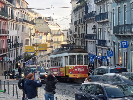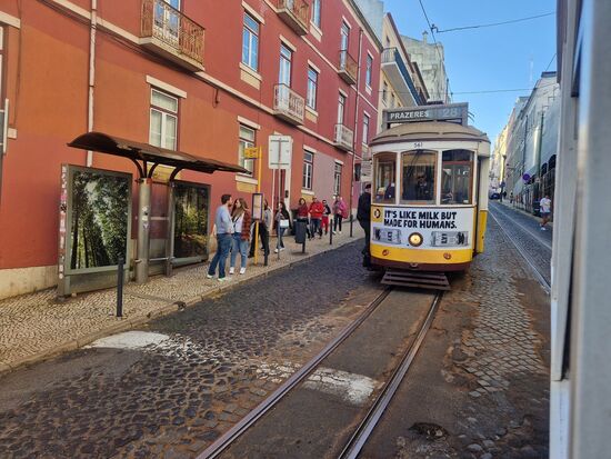 Die interessante und ziemlich lange Fahrt führt durch viele enge und steile Alstadtgassen zum Praca Martim Monitz. Die Bahn ist mehr als gut gefüllt und öfters erschallt der Ruf "move to the back for more people", wir haben zum Glück Sitzplätze. Am Praca da Figueira kehren wir noch in der Confeitaria Nacional, einer berühmten Konditorei ein.
