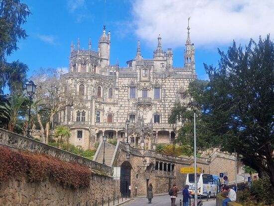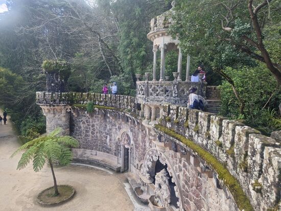 Am ersten Tag wollen wir einen Ausflug nach Sintra unternehmen. Zum Bahnhof Lissabon-Rossio gelangen wir zu Fuß. Von hier fährt etwa stündlich ein Zug nach Sintra. In Sintra gehen wir durch den Ort am Palacio Nacional vorbei zur Quinta da Regaleira. Der Regaleira-Palast und der zugehörige Park wurden 1910 fertiggestellt. Der gut besuchte Park ist sehr abwechslungsreich gestaltet.