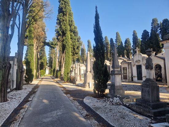 Mit dem Bus fahren wir nun zum Friedhof dos Prazeres. Nach einem Rundgang im Friedhof steigen wir in die dort startende historische Straßenbahn 28E ein.