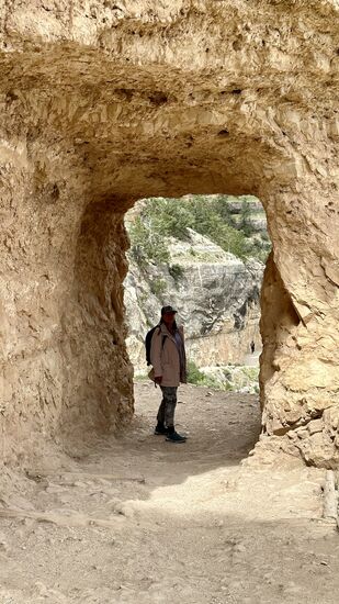 Hier geht es runter, zunächst recht moderat.Uns kommen mehrere Hiker entgegen, die mitten in der Nacht unten am Fluß gestartet sind und jetzt auf den letzten Metern nach 0ben sind. Wir unterhalten uns mit einem netten Ehepaar aus den USA (sie waren 4 Jahre in Wilhelmshafen bei der US Armee stationiert und lieben Deutschland). Sie waren 3 Tage am Fluß unten - 2 Tage in der Phantom Ranch in einer Cabin, eine Nacht im Zelt. Beide - ca. 55-60 Jahre alt - waren total begeistert und glücklich, dass sie diesen Trail gegangen sind.