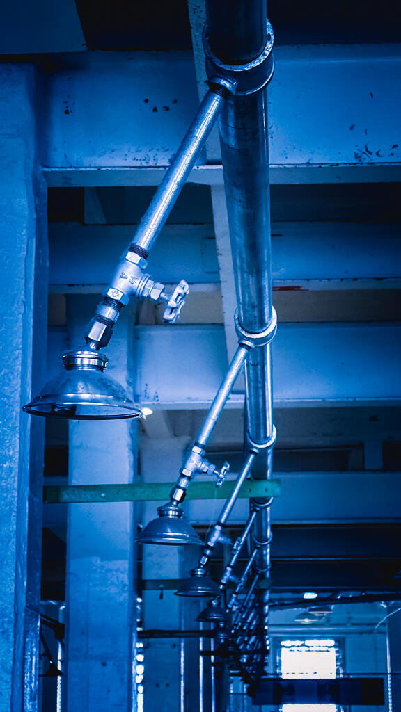 An der Decke des Speisesaales sind Kannister, die mit Tränengas befüllt waren.