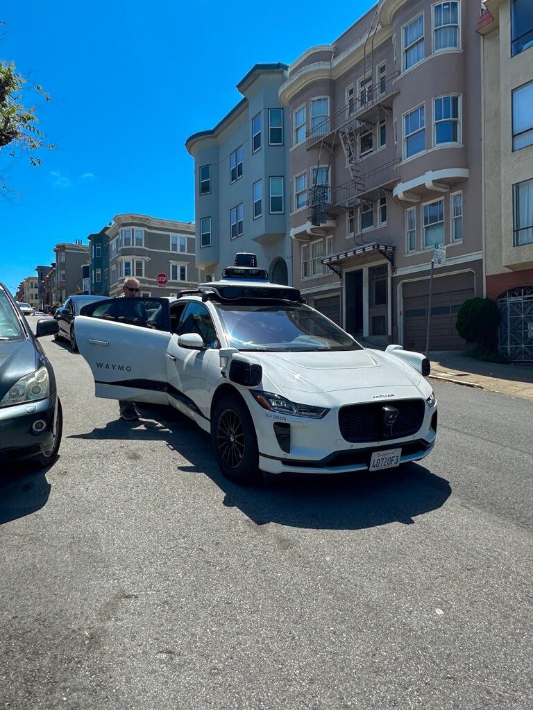 Obwohl wir die nun schon so oft gesehen haben, bestaunen wir es immer wieder—hier hat es wohl ein Anwohner bestellt—das Fahrzeug wartet brav und beide Passagiere steigen hinten ein…