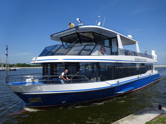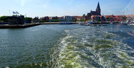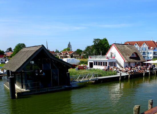 Unser Spaziergang endete am Hafen, wo wir uns dann mit der stündlich verkehrenden Fähre von Barth zurück nach Zingst haben schippern lassen. Der Käpt'n klärte uns über Flora und Fauna auf, der grösste hier im Naturschutzgebiet lebende Vogel sei der Seeadler. Wir haben sogar einen gesehen, der war aber leider zu weit entfernt für ein Foto.