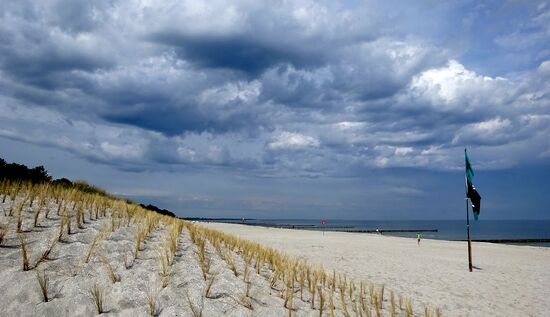 Eine Radtour Richtung Osten, auf dem Damm entlang, habe ich vormittags noch unternommen, bin durch den Osterwald bis fast zum 3-Länder-Eck gekommen, da war dann gesperrt, Baustelle. Ab Osterwald Naturschutzgebiet, etwas für Wanderer oder auch Radler durch den Moorwald.....aber nicht bei den Mücken. Hab nur mal einen Blick auf den fast menschenleeren Strand geworfen, da ist man wirklich richtig ungestört.