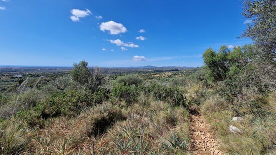 Bei Costa dels Pins sehen wir einen Waldbrand, erkennen unsere Finca, blicken auf Cala Millor und die Halbinsel Punta de n`Amer, die wir später auch noch besuchen werden. Westwärts erkennt man die Gipfel der Tramuntana, und gen Süden Portocristo und Cales de Mallorca. Traumhaft schön!!!