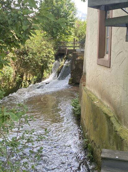 Unser nächsten Ziel ist die Fellenbergmühle, in der ein feinmechanisches Museum untergebracht ist. Leider bleibt sie gerade heute wegen Krankheit geschlossen.
