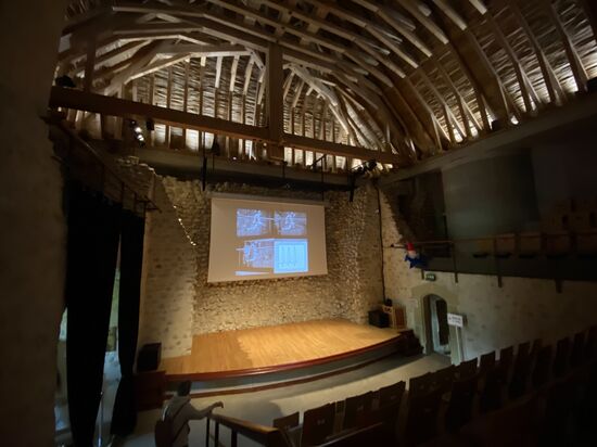 Im oberen Stockwerk läuft eine Videopräsentation - aber mcih interessiert hier nur der Dachstuhl.