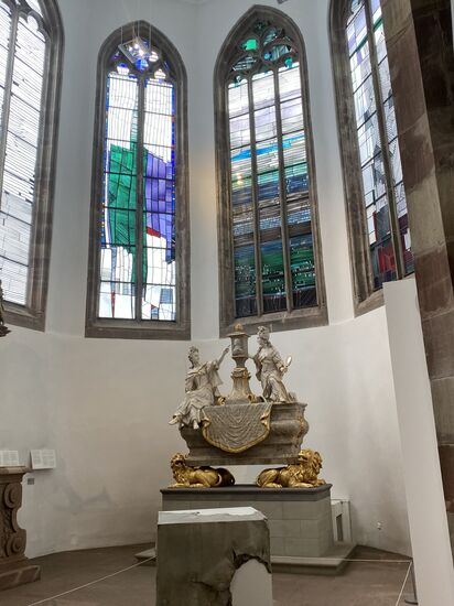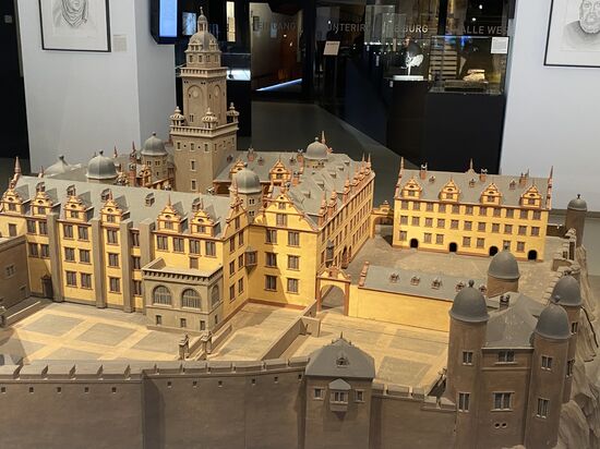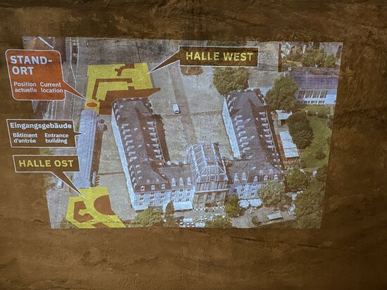 Wir kommen mit einem sehr netten älteren Museumsführer ist Gespräch, der uns vieles erklärt und ans Herz legt. In der großen Halle zeigen Virdeopräsentationen die verschiedenen Baustufen des Saarbrücker Schlosses.