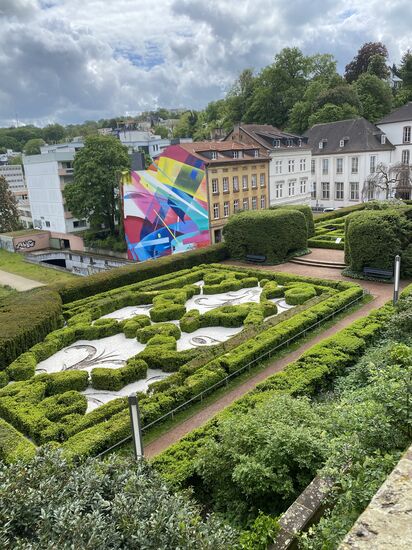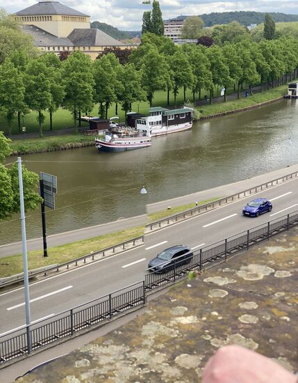 Von der Schlossmauer, die beim Bau der Autobahn um 16 m zurückversetzt wurde, hat man den vielleicht schönsten Ausblick auf Saarbrücken.