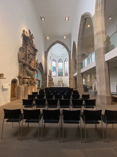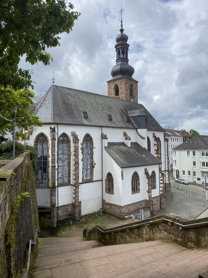 Die spätgotische Schlosskirche aus dem 15. Jh. erhielt 1743 von Stengel eine barocke Turmhaube. Nach der starken Beschädigung im 2. Weltkrieg wurde sie in den 50er Jahren wieder aufgebaut und mit kunstvollen Meistermannfenstern ausgeschmückt. Im Chorraum befinden sich die Grabmäler der letzten Saarbrücker Fürsten. Museum in der Schlosskirche