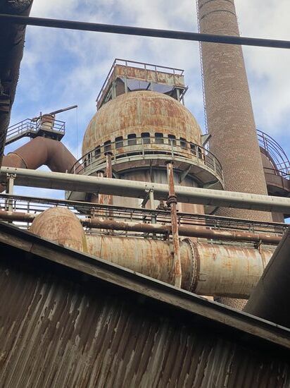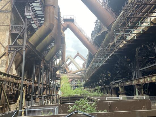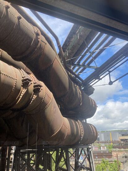 Die historischen Anlagen der Roheisenproduktion sind in der Völklinger Hütte komplett erhalten und erfahrbar. Mehr als sieben Kilometer Besucherwege führen zu Meilensteinen der Technikgeschichte wie dem Erzschrägaufzug, der Sinteranlage oder den riesigen Schwungrädern der Gebläsemaschinen. 2024 kommt das nicht nur technisch faszinierende Meisterwerk der Trockengasreinigung hinzu.