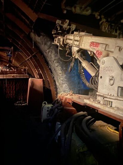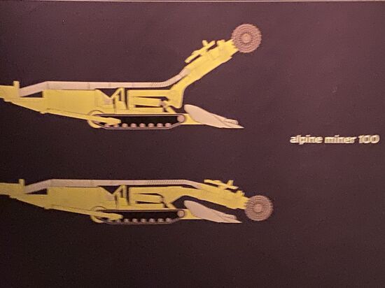 Der Vortrieb in den Streb und die Vorbereitung eines fest umrissenen Abbaufeldes im entsprechenden Streb. Zum Vortrieb wird eine Maschine vom Typ Alpine miner 100 eingesetzt. Der Abbau der Kohle erfolgt mittels Drehbewegung einer Dornenschrämmwalze, die am äussersten Ende eines beweglichen Arms angebracht ist. Mit 20 bis 25 m2 hat der Arm eine ausreichende Reichweite für die gesamte Mächtigkeit des Kohleflözes. Die vielseitige Maschine schiebt die abgebaute Kohle anschliessend auf ein Transportband, das sie zum Treibschacht fördert. Von dort gelangt die Kohle nach "über Tage". Die Abstützung der Strecke erfolgt durch Stahlbögen, die ein auf dem Arm der Vortriebsmaschine befestigter Mini-Heber alle Meter aufrichtet. Ein mit dem Bewetterungssystem verbundener Saugventilator sorgt in jedem Abbaufeld für Frischluftzufuhr. Das System besteht aus unter einer Schiene hängende, ineinander geschobenen Lutten, das mit dem Vortrieb mitgeführt wird.