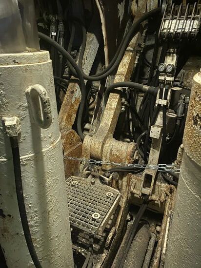 Die Fördermaschine liefert die notwendige Kraft, um das Seil, das in den Förderschacht hinunterführt, mit der Höchstgeschwindigkeit von 16 Metern pro Sekunde zu bewegen. Sie besteht aus einem Motor und einer Trommel,