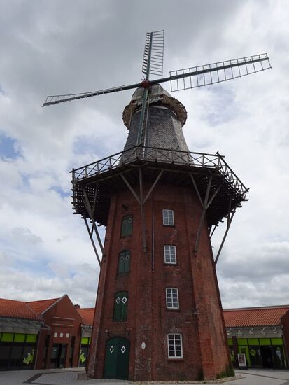 Sind dann bis zum Einkaufszentrum "Norder Tor" geradelt, vom Discounter über Imbisse bis Mode alles vertreten. Direkt dabei stehen 2 Windmühlen, die Deichmühle und die Frisiamühle. Die Frisiamühle steht leider zwischen Einkaufszentrum und Gebäuden, kommt gar nicht so gut zur Geltung, meine persönliche Meinung..