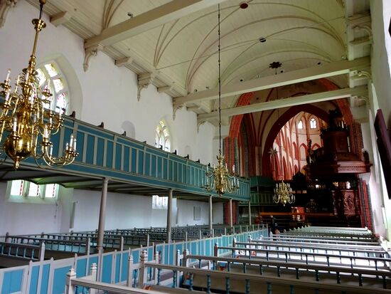 Ludgerikirche, erbaut in 3 Bauabschnitten, vom 13.- Mitte 15. Jh., 80 m lang und der grösste mittelalterliche Sakralbau Ostfrieslands.