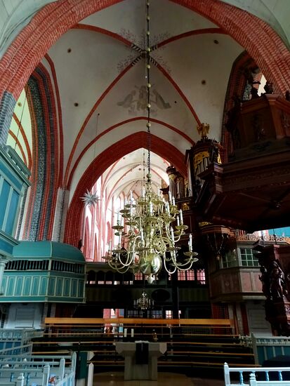 Gut gestärkt gings weiter durch die Stadt, am Rathaus, der Mennonitenkirche und des daneben stehenden Gebäudes "3 Schwestern" vorbei. Abschluss war der Besuch der Ludgerikirche. Alle diese Sehenswürdigkeiten befinden sich in Sichtweite voneinander.