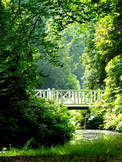 Auf solchen Wegen geht's durch den Schlosspark. Leider sind die vielen Rhododendren bereits verblüht