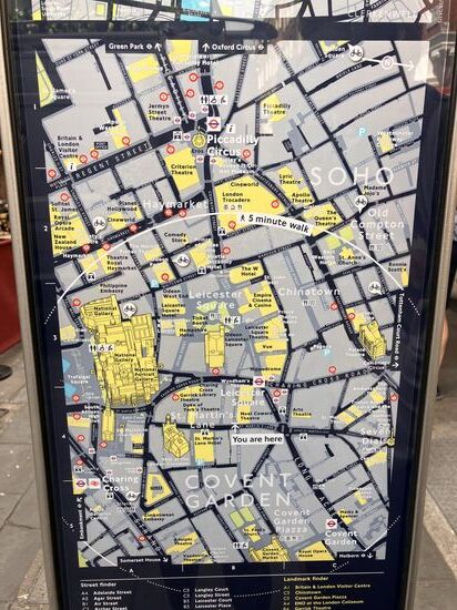 Nach Blick auf die Karte entscheiden wir zu nahe gelegenen Coventgarden zu laufen vorbei an vielen markanten Stellen