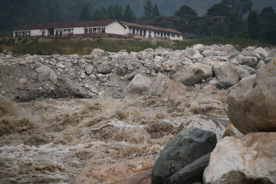 Hier hat Denis die beiden vor ein paar Tagen abgesetzt. Da konnte man noch über den Fluß zum anderen Ufer fahren
