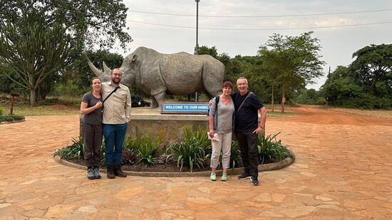 Vier Stunden später kamen wir alle glücklich und durchnässt wieder am Hafen an und machten uns auf den vierstündigen Weg zu unserem nächsten Ziel, dem Ziwa Rhino Sanctuary. Die Fahrt nutzten wir schon einmal um jegliche Sitz- und Schlafpositionen für die nächsten Tage zu testen. Gar nicht so einfach, das Hinterteil muss sich erst einmal an die Kombination aus weichem Polster und hartem Gestell gewöhnen. Für den Nacken und den Rücken sind die Bodenwellen die Endgegner. Nach dem ersten Kilometer lagen und saßen wir schon schnarchend in den Sitzen. Denis ist ein sehr aufmerksamer Fahrer, selbst ich auf dem billigen Platz in der hinteren Sitzreihe fühlte mich sicher und konnte ab und zu für ein halbes Stündchen die Augen zumachen.