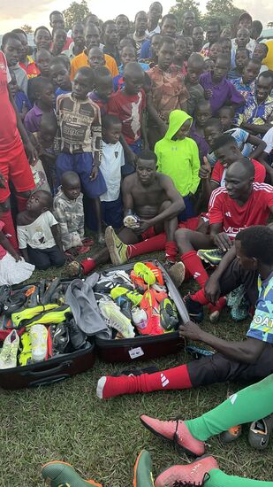 Am liebsten würden sich alle auf die Fußballschuhe stürzen, aber der Trainer packt alle in den Koffer und verwahrt sie