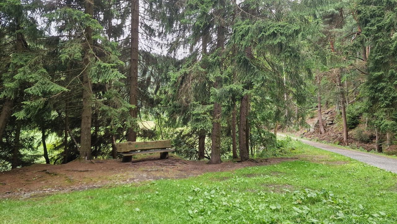 Nach einem wirklich guten und reichlichen Frühstück führt uns unsere heutige Wanderung direkt vom Hotel aus ins Schwarzwassertal, ins Tal der Schwarzen Pockau. Über den Hinteren Grund steigen wir in unsere Rundtour ein und wandern fast ohne Steigung entlang des Flußes. Linksseitig schon massive Felsformationen, gewaltige Bäume, ausladende Wurzeln und bemooste Felsen. Märchenhaft schön. Erinnerungen an "Das kalte Herz" . Rechtsseitig eine Lehrtafel, sehr interessant gestaltet. Über den Arnoldweg steigen wir steil bergan und laufen dann wieder relativ eben bis zum Aussichtspunkt Katzenstein auf 706 Metern Höhe. Von hier können wir die Blühwiesen von gestern weit oben in der Ferne erkennen. Über den Lehrpfad und einen Teil des Grünen Grabens verlassen wir den Wald, passieren einen großen Parkplatz und kehren in der Bergschänke zum Katzenstein ein. Dieses Haus mit einer guten Tradition wurde erst im Mai diesen Jahres von einem neuen Pächterpaar übernommen. Hochwertige Produkte, eine gute vegetarische (aber nicht nur) Küche, eine nette Bedienung. Sehr zuempfehlen!!!