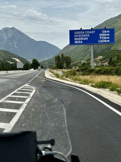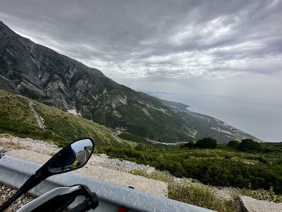 Am nächsten Tag setze ich meine Reise entlang der Küste Richtung Süden fort. Ich starte ohne Frühstück, zu sehr freue ich mich auf die weitere Route. Zunächst folge ich der E762 und bringe so die dicht besiedelten Regionen problemlos hinter mich. Die Anzahl der Tankstellen, von denen viele nur Ruinen sind, ist ohnegleichen. Obwohl der Treibstoff mit 1,80 € sogar die heimischen Preise übertrifft, und das bei einem Einkommen, das selten über 600 € liegen dürfte. Die Ausblicke entlang der SH8 zwischen den Bergen und der Küstenlinie sind atemberaubend. Der Abschnitt, von dem ich mir am wenigsten versprochen hatte, stellt sich als genauso beeindruckend heraus wie der Rest von Albanien. Ich bin glücklich, dass ich mich doch entschlossen habe, die Reise nach Albanien fortzusetzen. Motorradfahrer treffe ich auch diesmal nahezu keine an. Selbst der Verkehr ist weitestgehend gering.