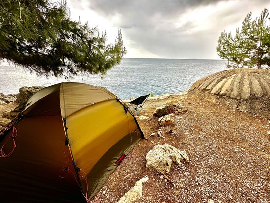 Am frühen Nachmittag steuere ich einen Campingplatz in Himare direkt am Meer an und schlage mein Zelt auf. Es dauert nicht lange, und ich komme mit einem Motorradfahrer ins Gespräch. Einige Biere und viele Stunden hervorragender Unterhaltung später lege ich mich zufrieden ins Zelt. Die vielen besorgten Fragen im Vorfeld, ob das Reisen allein mit dem Motorrad nicht einsam sei, kann ich für mich als unbegründet entkräften. Für mich ist es genau die Balance aus dem Genuss der Reise allein und den vielen Begegnungen, die den Charme einer solchen Reise ausmachen.