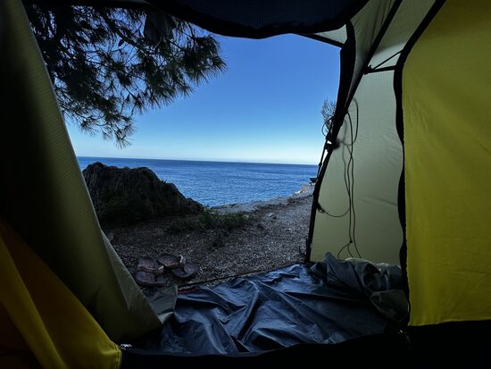 Weiter südlich kann man von den Klippen der Küstenstraße die Küste von Korfu sehen. Schließlich erreiche ich am Nachmittag die Qafë Botë Albanian Border Station. Ich bleibe eine Weile stehen, um mich emotional von Albanien zu verabschieden – etwas, das ich bisher noch an keiner Grenze verspürt habe. Die monatelange Vorbereitung, die übertroffenen Erwartungen und die vielen tollen Eindrücke gilt es mitzunehmen.