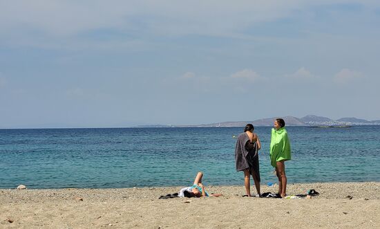 Ein nackiger, junger Mann, der zwar schon hier war, bevor wir kamen, wurde dann von ein paar alten Griechen mit Schimpf in die Flucht gejagt.