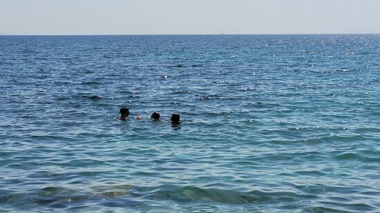 Ich lag von meinen 3 unbeachtet im warmen Sand unter einem Strohschirm, las ein Buch und hüpfte zwischendurch ins Wasser.