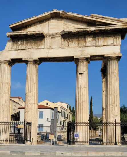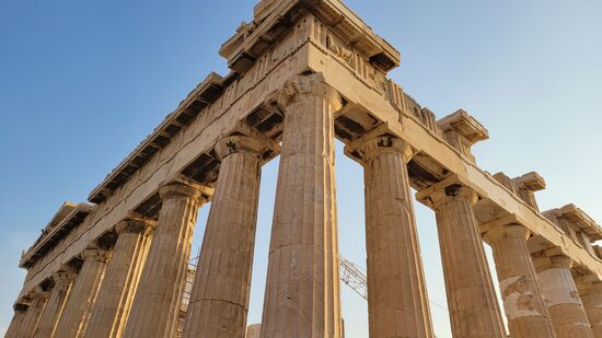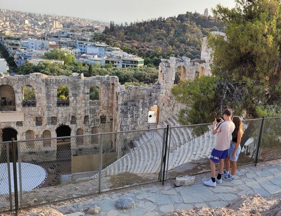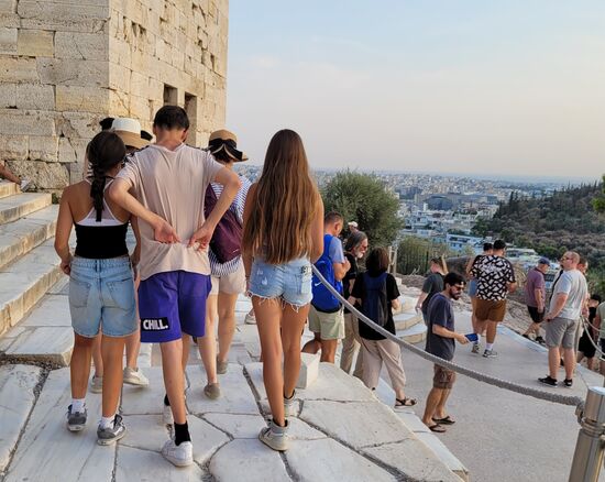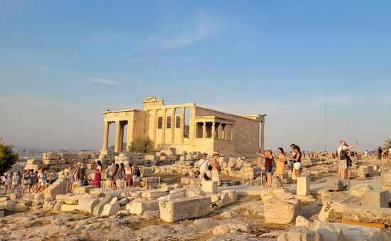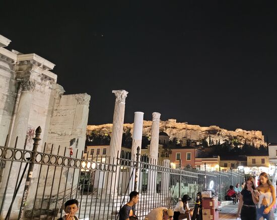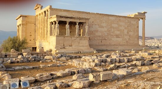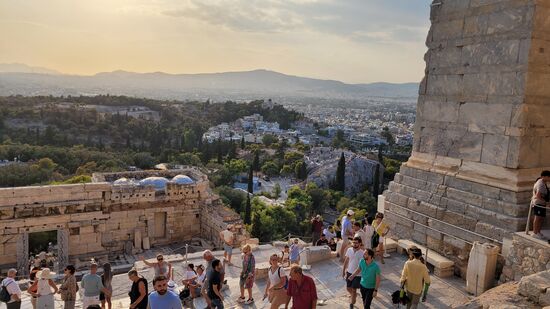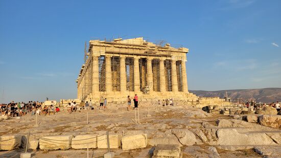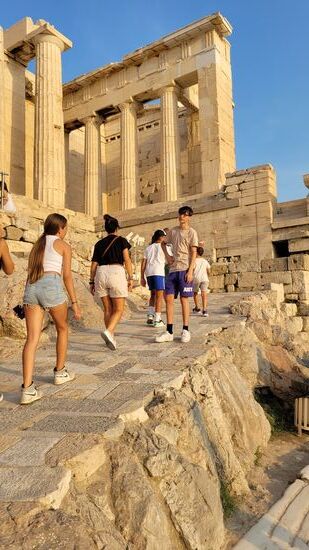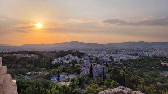 Kurz vor 17.00 h machten wir uns auf gut Glück auf den Weg zur Akropolis. Online war es nicht möglich die verbilligten Seniorentickets bzw. die kostenlosen Tickets für Schüler (EU-Bürger) zu erhalten. Wir hatten eine gute Zeit erwischt, denn bei der Kassa stand eine übersichtbare Menschenschlange. Ich reihte mich ein und vertrieb mir mit netter Plauderei mit einer deutschen Jungfamilie das Anstehen. Die Kids inzwischen im Schatten und warteten geduldig fast eine Stunde. Finanziell hatte sich das auf jeden Fall gelohnt. Das Seniorentcket für mich kostete EUR 10.-- und die 3 gingen frei.