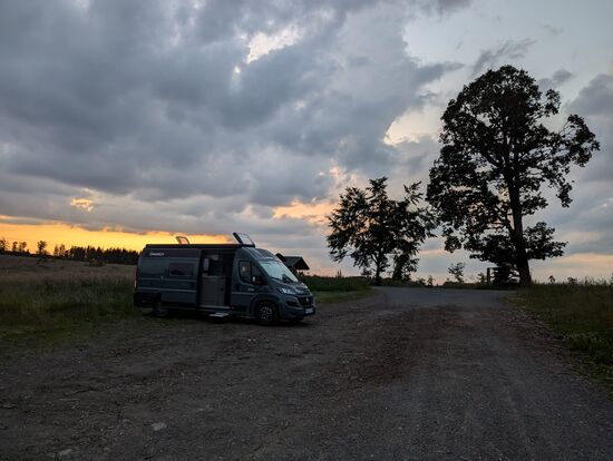 ändert sich am Abend. Irgendwo in der Ferne grummelt es, ein Gewitter ist unterwegs und es wird merklich kühler. Und am späten Abend sehe ich zum ersten Mal Glühwürmchen, die um unseren Van fliegen. Ein wunderschöner Augenblick, leider konnte ich kein Foto machen.