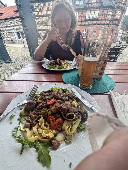 heute sind Regen und Gewitter angesagt. Wir fahren nach Stollberg und schlendern durch die schöne Altstadt. Am Marktplatz gehen wir Hirschgulasch essen und laufen noch zur Lutherbuche um einen Wanderstempel abzuholen.
