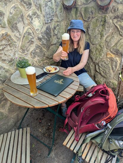 Am Schluss trinken wir im Burggasthaus ein Alkoholfreies Weizen und wandern die Strecke wieder zurück.